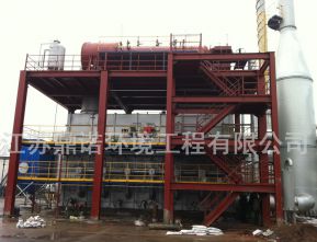 采用重油、廢溶劑為加熱介質(zhì)。將在流化造粒塔生成的含有機物的混合污鹽加入回轉(zhuǎn)焙燒爐內(nèi)焙燒。在高溫下污鹽中的有機物氣化熱解。焙燒后的無機鹽外送綜合利用或填埋。焙燒產(chǎn)生的煙氣經(jīng)焚燒爐二次焚燒,將煙氣中有機物完全氧化成CO2、H2O、HCl、S